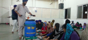 In Taktht Kesgarh Sahib, Anandpur Sahib, for example, they serve tea to the members of the sanggat from a container mounted onto wheels. The sewadar pushes it around with a handle just like the one you find on a bicycle. And he has a lever which he pulls to dish out the chaa.