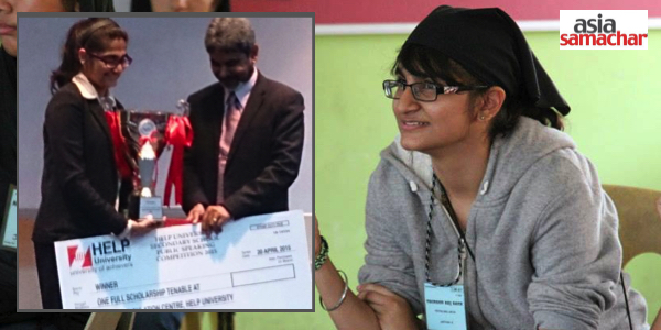 Fourteen years old Trimann Raj Kaur Johl emerged champion at a recent public speaking competition organised by a local private university in Kuala Lumpur.