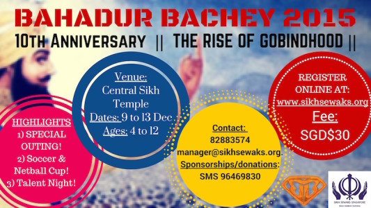 As we come to the end of 2015, Sikhs Sewaks Singapore once again brings Bahadur Bachey (BB) Samelan to the Sangat from 9-13 Dec 2015. Celebrating a decade of fun and learning, this 10th edition of BB will have special outings, games, sports leagues and the very much loved Talent Night!