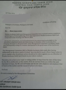 Ipoh gurdwara president defends actions, says no more response from him (Asia Samachar, 1 March 2016)