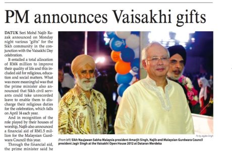It entailed a total allocation of RM4 million to improve their quality of life and this included aid for religious, education and social matters. What was more meaningful was that the prime minister also announced that Sikh civil servants could take unrecorded leave to enable them to discharge their religious duties for the celebration, which falls on April 14 each year.
