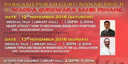 In conjunction with Guru Nanak’s birthday celebration next month, the Wadda Gurdwara Sahib Penang (WGSP) has lined up two medical experts to talk about heart attacks and women health issues.