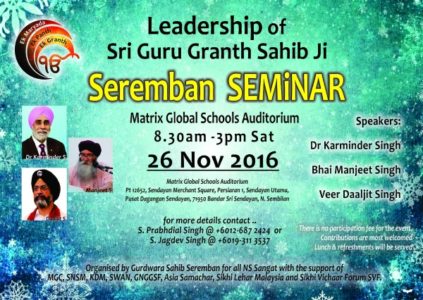 The “Leadership of Sri Guru Granth Sahib Ji: Seremban Seminar’ will now take place at the Matrix International School Auditorium at Bandar Sendayan, Seremban. The venue is about eight minutes drive from the Seremban toll towards the Seremban 2 area.