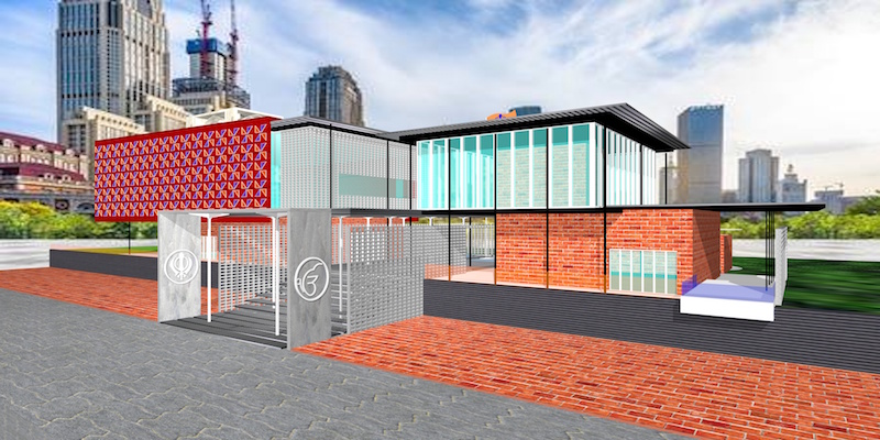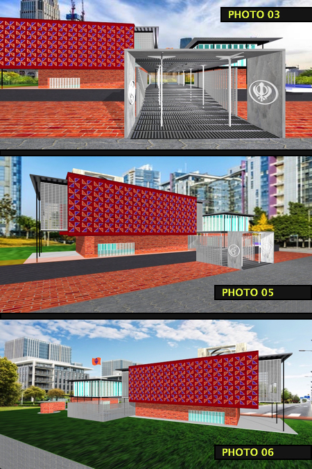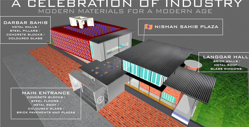 However, wouldn’t it be interesting to design a Gurdwara that celebrates not only the past, but one that celebrates the modern age as well, expressed with the usage of modern materials that symbolize our contemporary identity in the world today? And so this idea to celebrate the present age through the usage of modern materials — primarily, steel, glass, concrete and brick left in its unadorned state — were the inspiration behind the proposal of this Gurdwara. The resulting design visually expresses all the materials used to build the building in its most visible manner.