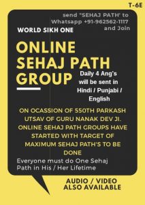 To join, send ‘SEHAJ PAATH’ via Whatsapp to +91-9625621117worldsikhone@gmail.com |