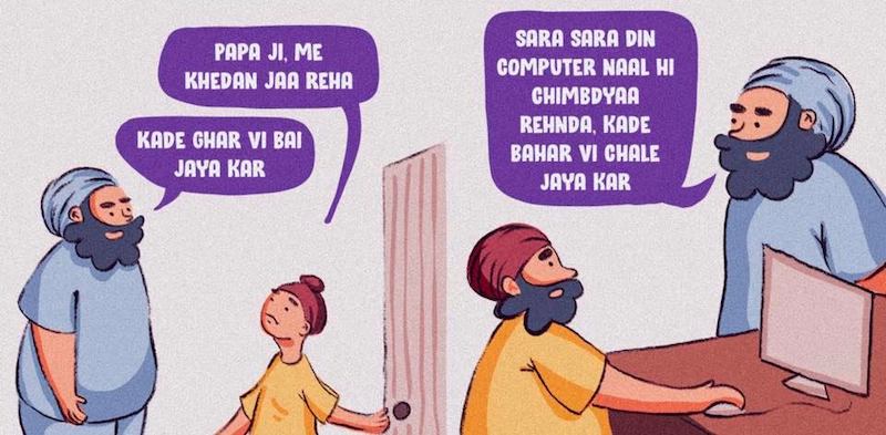 Whether it is your nani doing chumpy for you (rubbing oil onto your long hair and massaging it) or playing jhootei maiyya (A traditional Punjabi childhood rhyme, where the parents or grandparents sing to the kids while they act like a human swing carrying the children), they are some of the fondest memories you have of growing up. Recreating these very remembrances through comics on Instagram is Delhi based artist, Dashmeet Singh.