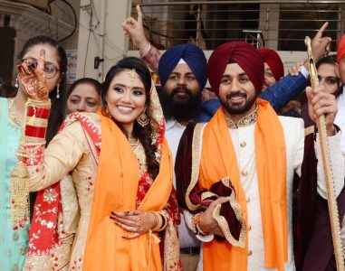 Manpreet, 28, appeared at the Jalandhar gurdwara dressed in a Panjabi wedding suit and a red turban while Illi, 27, was in a gorgeous Panjabi bridal costume.