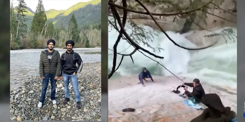 A group of quick-thinking young men unravelled their turbans and jackets to rescue a pair of hikers in a Metro Vancouver park – Video grab from CTV News