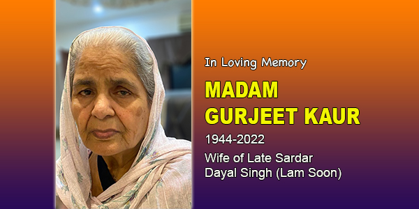 MADAM GURJEET KAUR (WIFE OF LATE SARDAR DAYAL SINGH) – LAM SOON