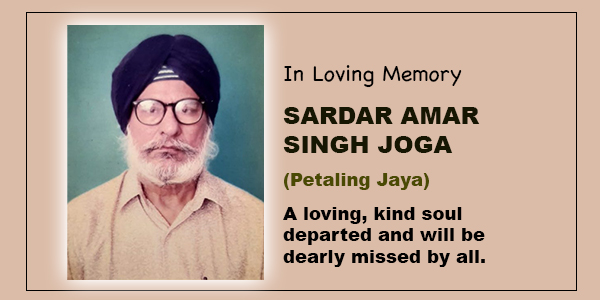 SEHAJ PATH DA BHOG will be held at Gurdwara Sahib Petaling Jaya on 9th July, 2022 (Saturday) from 5pm to 7pm. Kirtan and Antim Ardas followed by Guru ka Langgar. Your presence for the said prayers will be much appreciated by the family.