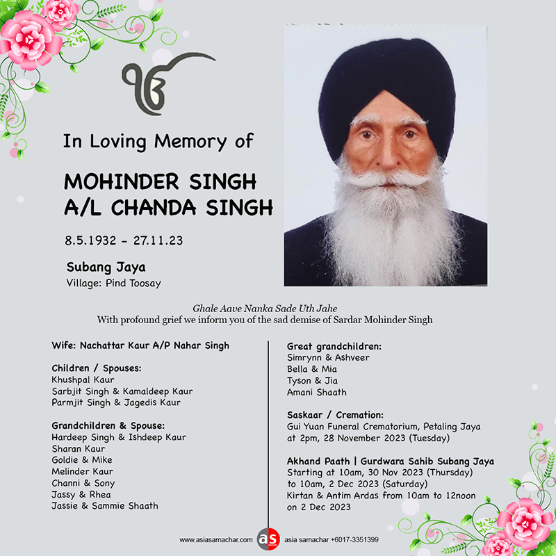 ASIA SAMACHAR is an online newspaper for Sikhs / Punjabis in Southeast Asia and beyond. When you leave a comment at the bottom of this article, it takes time to appear as it is moderated by human being. Unless it is offensive or libelous, it should appear. You can also comment at Facebook, Twitter, and Instagram. You can reach us via WhatsApp +6017-335-1399 or email: asia.samachar@gmail.com. For obituary announcements, click here