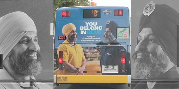 A Sikh man was featured in a recruitment drive poster of the South Australia Police. Asia Samachar columnist Dya Singh reader caught the photo in Adelaide a few days ago.