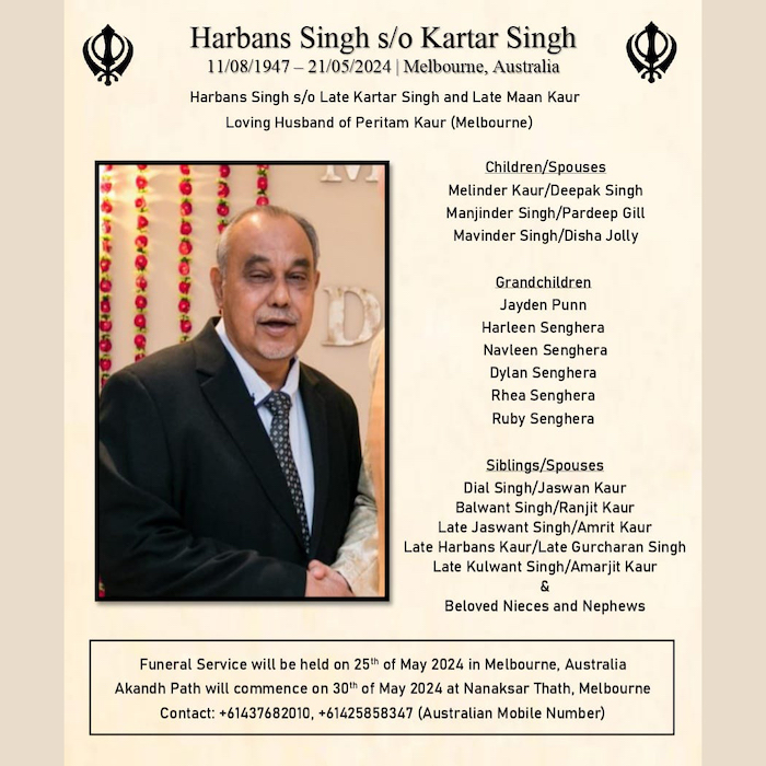 Harbans Singh Kartar Singh (1947 – 2024), Melbourne, Australia