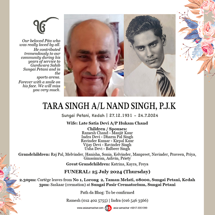 ASIA SAMACHAR is an online newspaper for Sikhs / Punjabis in Southeast Asia and beyond. You can leave your comments at our website, Facebook, Twitter, and Instagram. We will delete comments we deem offensive or potentially libelous. You can reach us via WhatsApp +6017-335-1399 or email: asia.samachar@gmail.com. For obituary announcements, click here