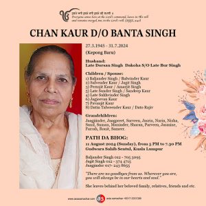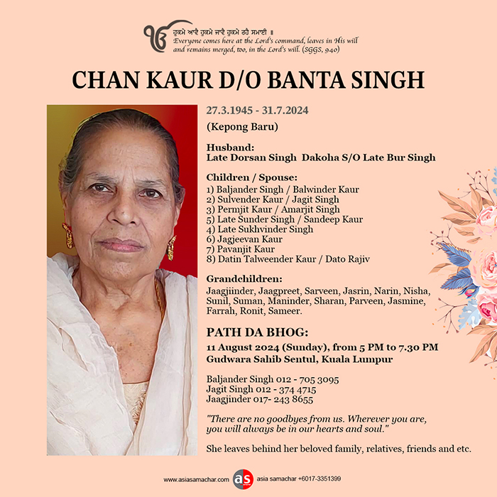 ASIA SAMACHAR is an online newspaper for Sikhs / Punjabis in Southeast Asia and beyond. You can leave your comments at our website, Facebook, Twitter, and Instagram. We will delete comments we deem offensive or potentially libelous. You can reach us via WhatsApp +6017-335-1399 or email: asia.samachar@gmail.com. For obituary announcements, click here