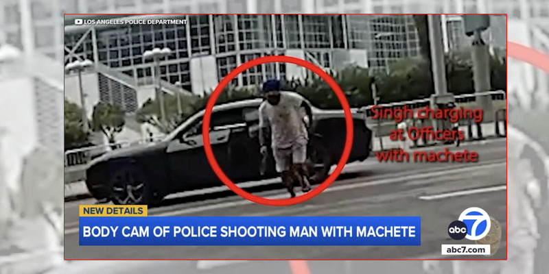 Singh then took off in his car, waving the machete outside the driver’s side window, according to police. Police said officers then initiated a brief pursuit in which Singh “drove erratically” and crashed with an officer’s vehicle. Singh stopped near Figueroa and 12th streets and charged at the officers with the machete, according to police. That’s when gunfire erupted, according to the report.