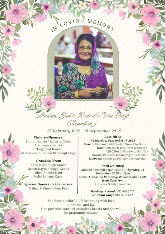 Madam Jasbir Kaur (1932 – 2025), Seremban