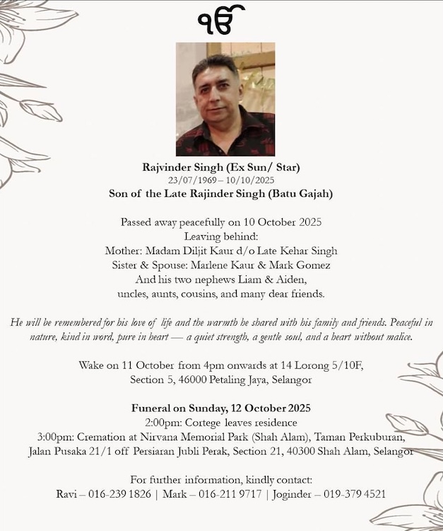 Son of the Late Rajinder Singh (Batu Gajah)