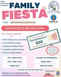 Coupon booklets of S$20 each — one booklet for all activities, shopping and stalls – are available at SIWEC, Central Sikh Temple, Gurdwara Sahib Yishun, Gurdwara Sahib Katong and Sri Guru Singh Sabha.