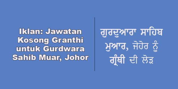 Iklan Jawatan Kosong Granthi untuk Gurdwara Sahib Muar, Johor