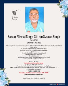 He returned to Waheguru on 14 November 2025.