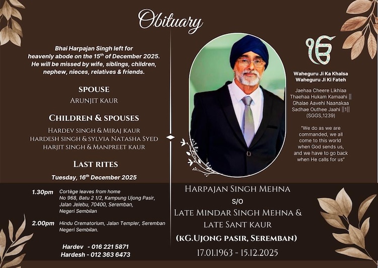 ASIA SAMACHAR is an online newspaper for Sikhs / Punjabis in Southeast Asia and beyond. You can leave your comments at our website, Facebook, Twitter, and Instagram. We will delete comments we deem offensive or potentially libelous. You can reach us via WhatsApp +6017-335-1399 or email: asia.samachar@gmail.com. For obituary announcements, click here
