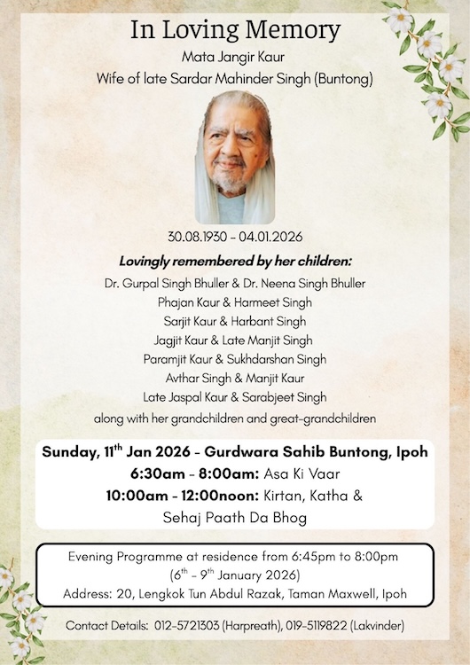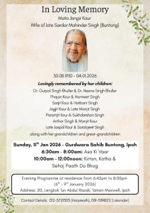 Sunday, 11th Jan 2026 – Gurdwara Sahib Buntong, Ipoh