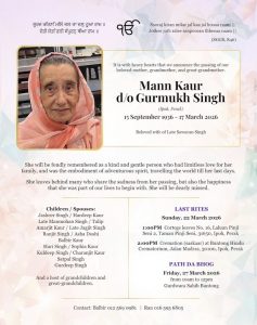 Mann Kaur d/o Gurmukh Singh
