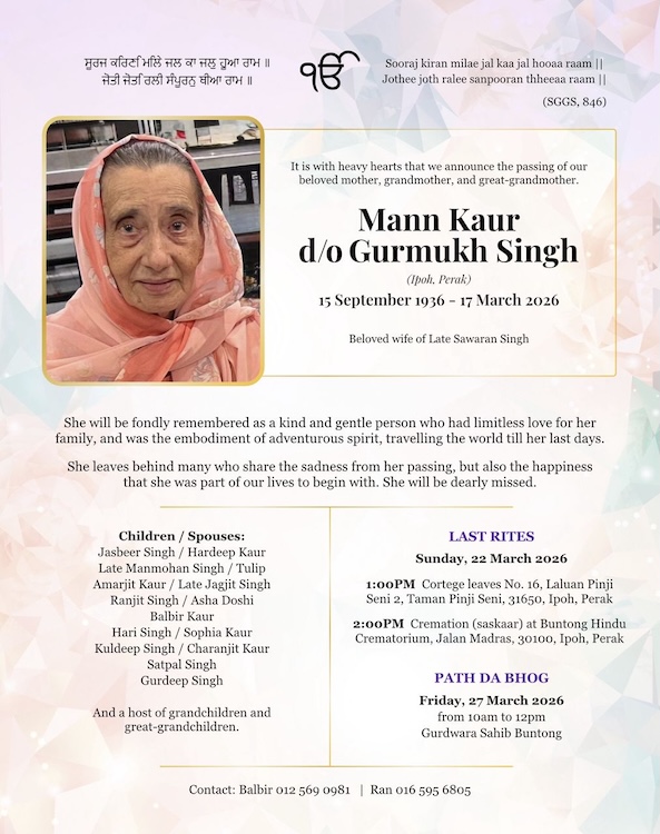 ASIA SAMACHAR is an online newspaper for Sikhs / Punjabis in Southeast Asia and beyond. You can leave your comments at our website, Facebook, Twitter, and Instagram. We will delete comments we deem offensive or potentially libelous. You can reach us via WhatsApp +6017-335-1399 or email: asia.samachar@gmail.com. For obituary announcements, click here