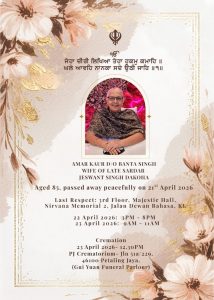 ASIA SAMACHAR is an online newspaper for Sikhs / Punjabis in Southeast Asia and beyond. You can leave your comments at our website, Facebook, Twitter, and Instagram. We will delete comments we deem offensive or potentially libelous. You can reach us via WhatsApp +6017-335-1399 or email: asia.samachar@gmail.com. For obituary announcements, click here