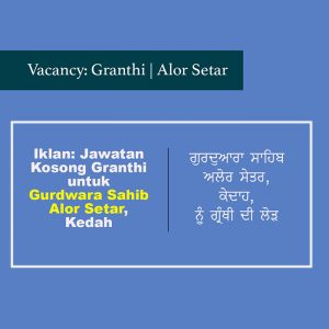 By CountryMalaysiaNews Protected: Iklan Jawatan Kosong Granthi untuk Gurdwara Sahib Alor Setar By Asia Samachar - April 23, 2026 0 15 Share on Facebook Tweet on Twitter This content is password protected. To view it please enter your password below: Password: