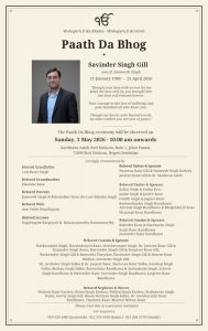 The Paath Da Bhog ceremony will be observed on