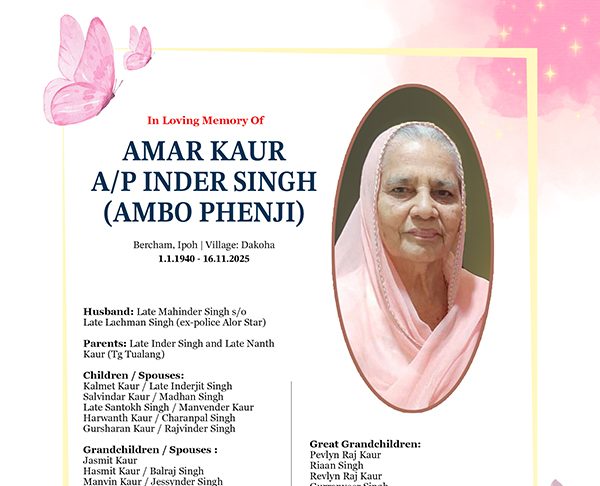 Naranjan Singh (1936 – 2025), Petaling Jaya