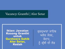 ਗੁਰਦੁਆਰਾ ਸਾਹਿਬ ਅਲੋਰ ਸੇਤਰ, ਕੇਦਾਹ, ਨੂੰ ਗ੍ਰੰਥੀ ਦੀ ਲੋੜ