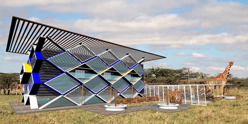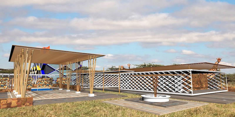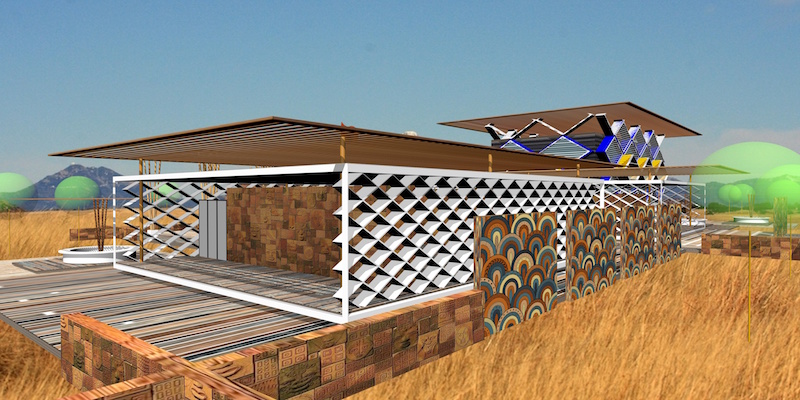 This community centre opens into the landscape and is flanked with various works of African art displayed as murals on the left. It is also a structure that is well shaded with the canopy above. This centre acts as an educational and cultural hub that promotes socializing to help people, both young and old, integrate better with each other and to foster closer relationships within the members of society.