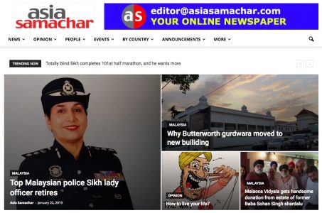ASIA SAMACHAR is an online newspaper for Sikhs / Punjabis in Southeast Asia and beyond. Facebook | WhatsApp +6017-335-1399 | Email: editor@asiasamachar.com | Twitter | Instagram | Obituary announcements, click here |