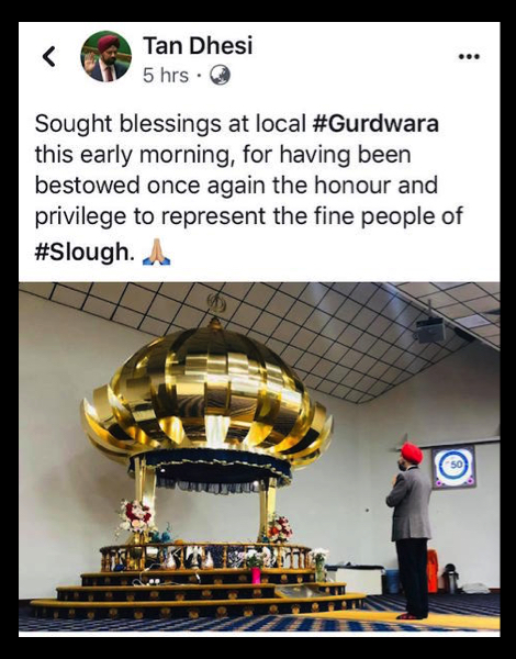 In another entry later, he says: “Sought blessings at local Gurdwara this early morning, for having been bestowed once again the honour and privilege to represent the fine people of Slough.”