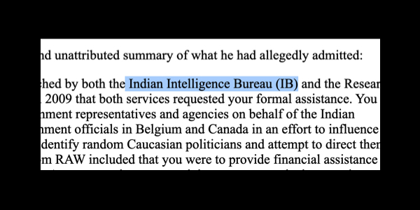 The document shows that Canadian security officials suspected India’s two main intelligence branches had asked an Indian citizen to sway politicians in this country into supporting Indian government interests, reports Global News.