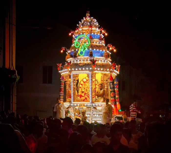 This is the chariot containing Lord Muruga’s image, which is decorated with diamonds, rubies and other jewels, as it makes its way from the Sri Mahariaman Temple in Kuala Lumpur’s Chinatown, to the Batu Caves temple.