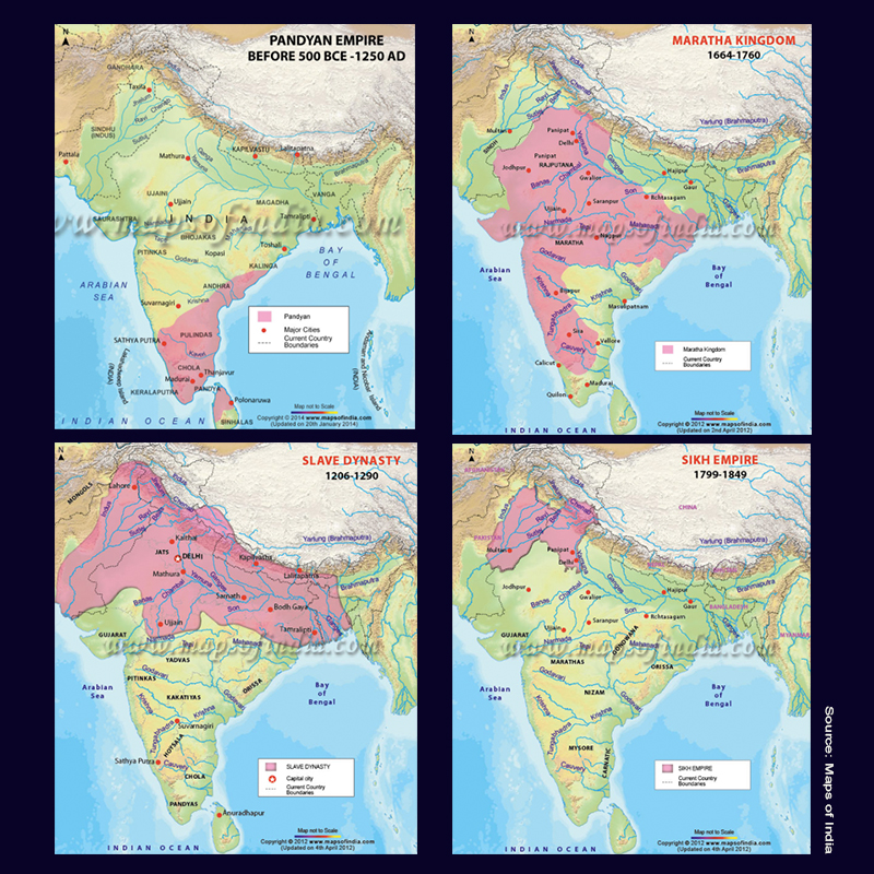 One of the indisputable facts about India is that it is not and never has been one country, one nation, or one people. India or more accurately Bharat is huge diverse subcontinent that has (as the maps show), been subject to various empires and dynasties. The map of India is as fluid as the great rivers coming off the mighty Himalayan mountain range.