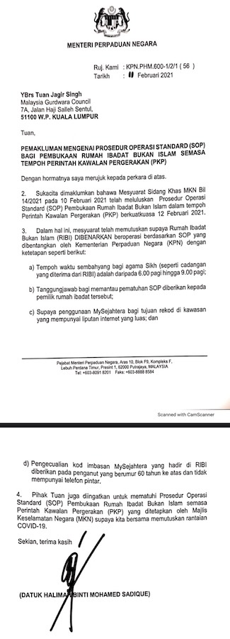 We were contacted by phone by the ministry official to obtain our views. I had also requested for evening prayers from 6pm to 8.30 pm daily. This is not included in the Ministry letter.