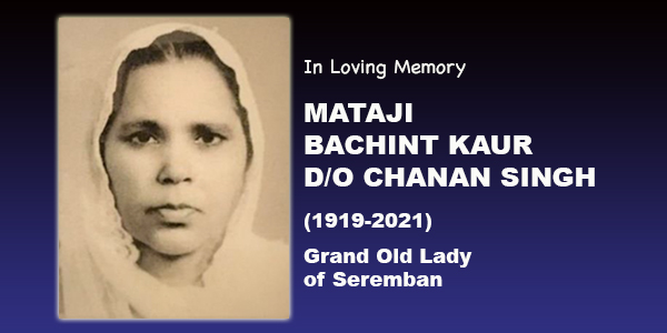 Mother of late Sardar Jaila Singh Sandhu, Seremban