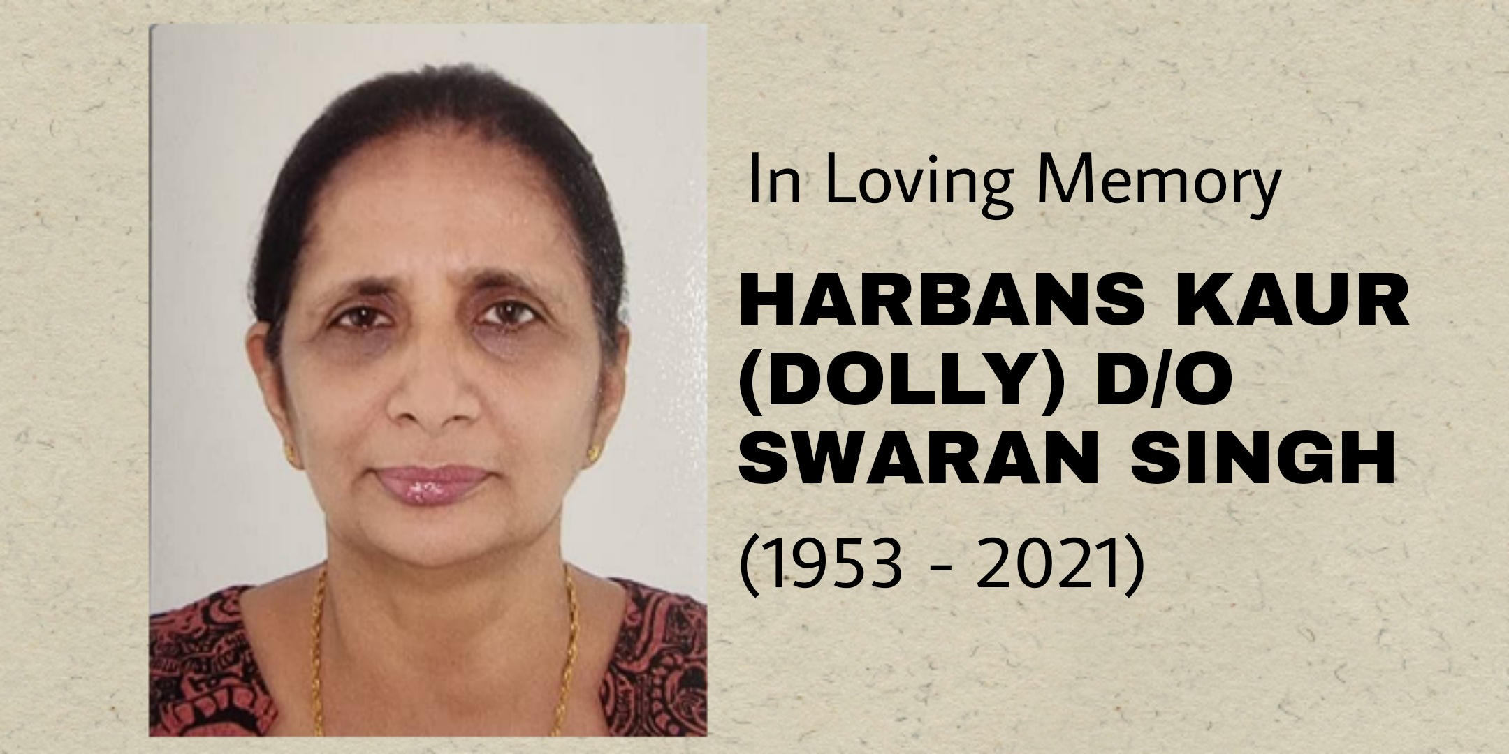 HARBANS KAUR (DOLLY) D/O SWARAN SINGH