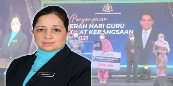 Saranjit Kaur won the Guru Inovatif (Innovative Teacher) award at the Teachers Day national level celebration in Putrajaya, yesterday (16 Dec 2021), which came with a RM4,000 cash prize.