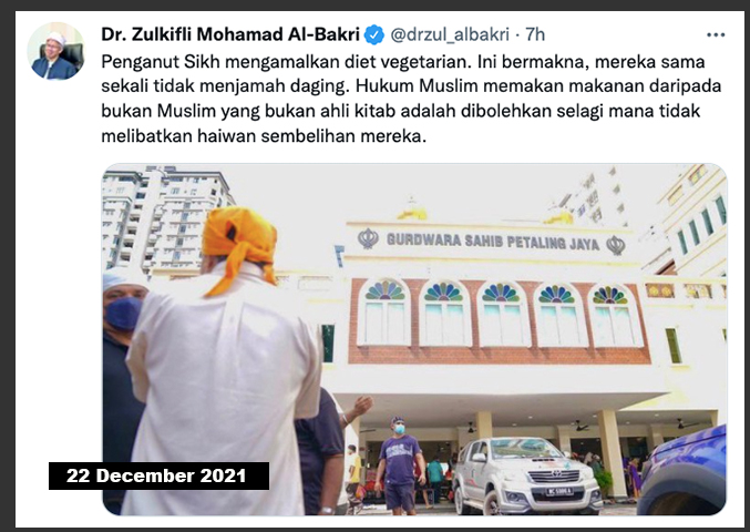 The green light came after Dr Zulkifli Mohamad al-Bakri visited Gurdwara Sahib Petaling Jaya (GSPJ) today (22 Dec).