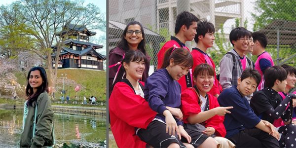 Harmeet Kaur in Japan: Left: Enjoying the cheery blossom; Right: Sports festival at the Niigata University – Photo: Supplied