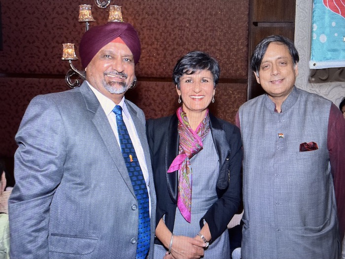 Mejar Singh Gill: With High Commissioner of Australia to India Harinder Sidhu (daughter of Ajaib Singh also previously from Naval Base Singapore) and former international diplomat, politician and writer Sashi Taroor, 2017