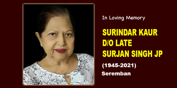 Mdm Surindar will be fondly remembered and greatly missed by all family members and friends near and far.