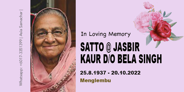 The cortege will depart for the Wadda Gudwara Ipoh Sikh Crematorium on 21st October 2022 (Friday) at 11.30am followed by cremation (saskaar) at 12.00pm