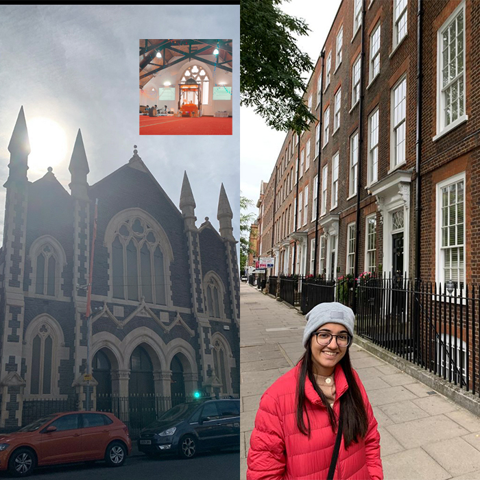 Gurvinderjit Kaur in Cardiff. Left: Cardiff gurdwara – Photo: Supplied